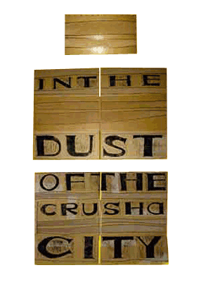 Cardboard, varnish, rubberstamped, linocut.